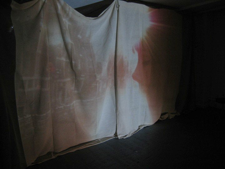 An installation using 6 abstract & personal video art pieces, each with music that would mix together as one would walk around the space, creating an ever-changing infinite experience of outcomes and stories depending on where one would be walking.